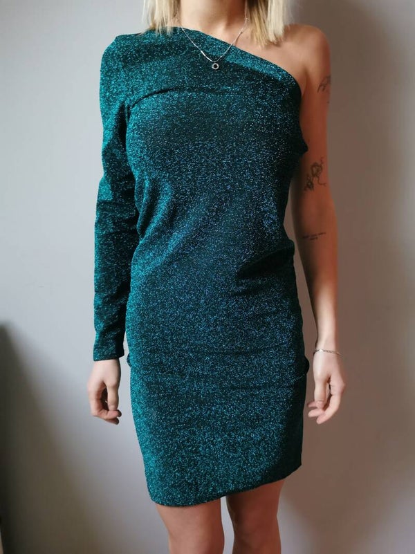 Sukienka mini r. 36 S / 38 M Pakuten kolor butelkowa ziele艅 i brokat